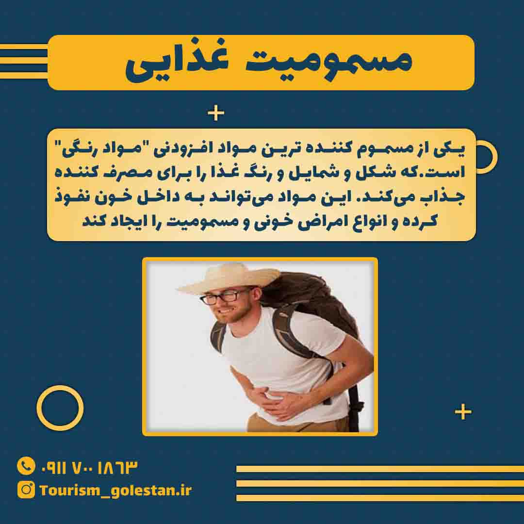 یکی از مسموم کننده ترین مواد افزودنی “مواد رنگی” است.که شکل و شمایل و رنگ غذا را برای مصرف کننده جذاب می‌کند. این مواد می‌تواند به داخل خون نفوذ کرده و انواع امراض خونی و مسمومیت را ایجاد کند