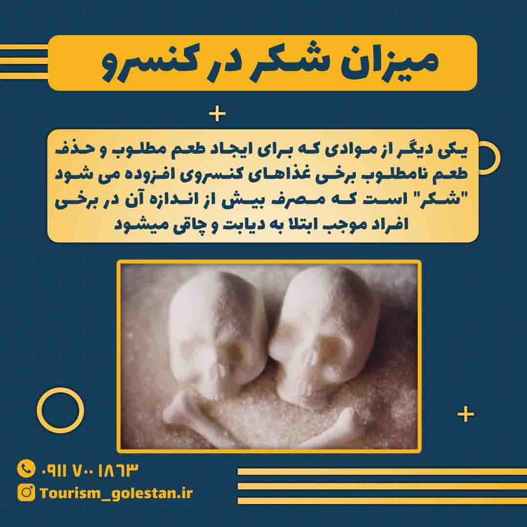 یکی دیگر از موادی که برای ایجاد طعم مطلوب و حذف طعم نامطلوب برخی غذاهای کنسروی افزوده می شود “شکر” است که مصرف بیش از اندازه آن در برخی افراد موجب ابتلا به دیابت و چاقی میشود